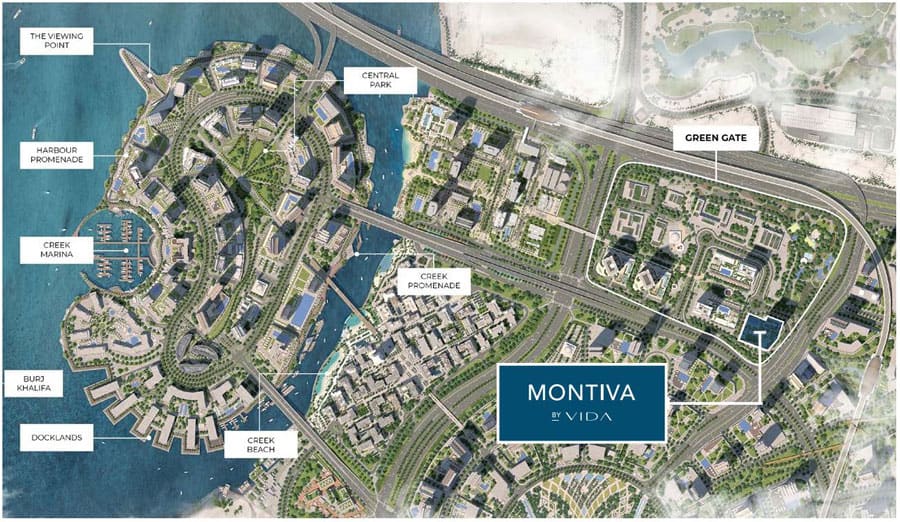 مونتیوا بای ویدا (Montiva by Vida) یک پروژه مسکونی لوکس از شرکت معتبر اعمار (Emaar) است که در قلب منطقهی در حال توسعه گرین گیت (Green Gate) در دبی کریک هاربر (Dubai Creek Harbour) واقع شده است. این برج بلندمرتبه شامل یک طبقه زیرزمین، طبقه همکف، دو طبقه پودیوم و ۴۷ طبقه مسکونی است و در مجموع ۴۷۴ واحد مسکونی را در خود جای داده است.