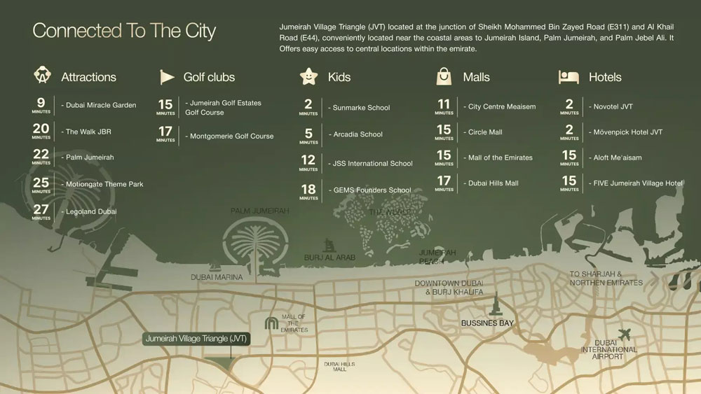 با انتخاب املاک سیلوا پارک لیوینگ در منطقه جمیرا ویلیج تراینگل، شما نه تنها در یکی از بهترین مناطق دبی ساکن میشوید، بلکه از تمامی امکانات رفاهی و لوکس این پروژه بهرهمند خواهید شد. این یک فرصت بینظیر برای تجربه زندگی مدرن در قلب دبی است.