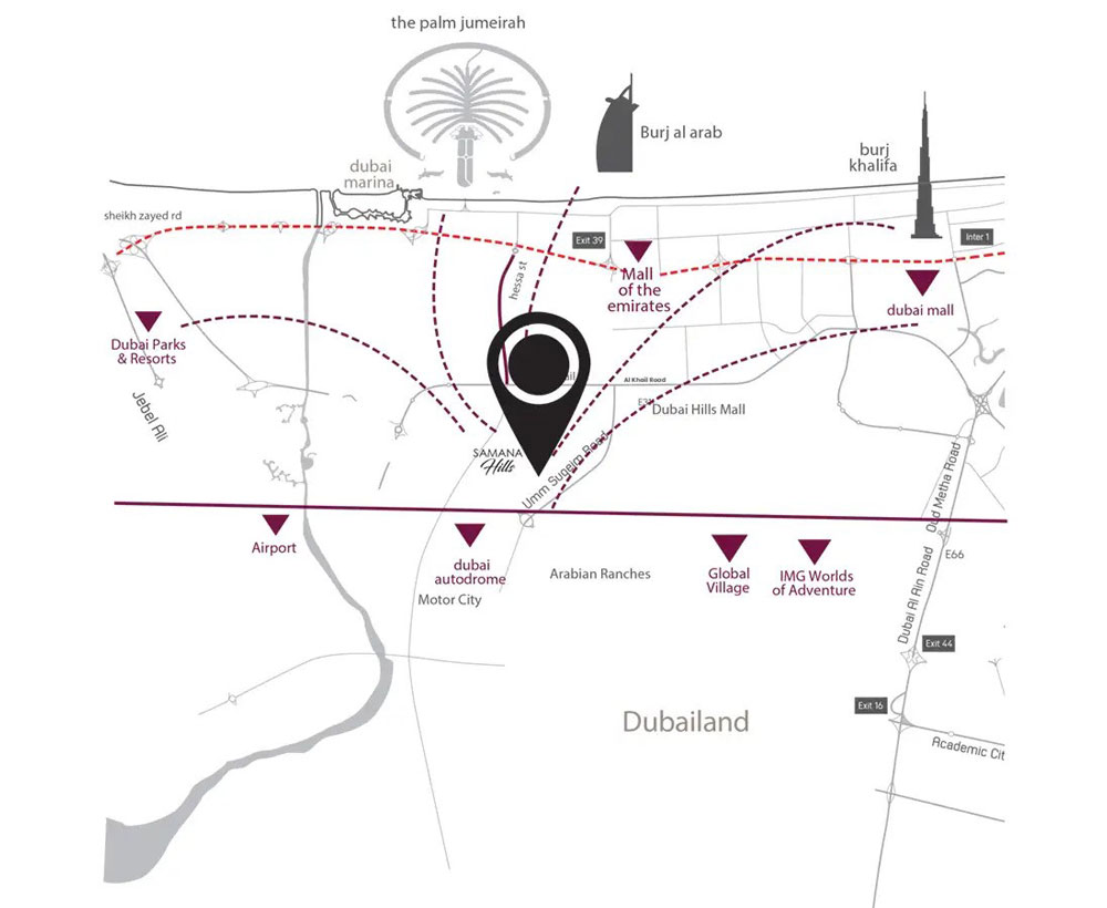 حدود ۹ دقیقه تا مرکز خرید دبی هیلز