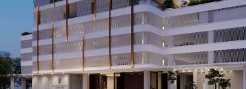 برج 18 طبقه ریتز کارلتون رزیدنس بلند و روی یک سکوی کامل با استخر و فضای سبز لنگر انداخته است.