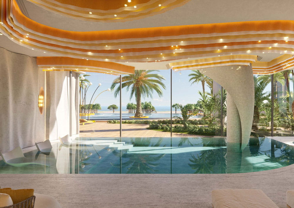 استخرهای روباز با طراحی خاص و چشم‌انداز فوق‌العاده به خط افق دبی